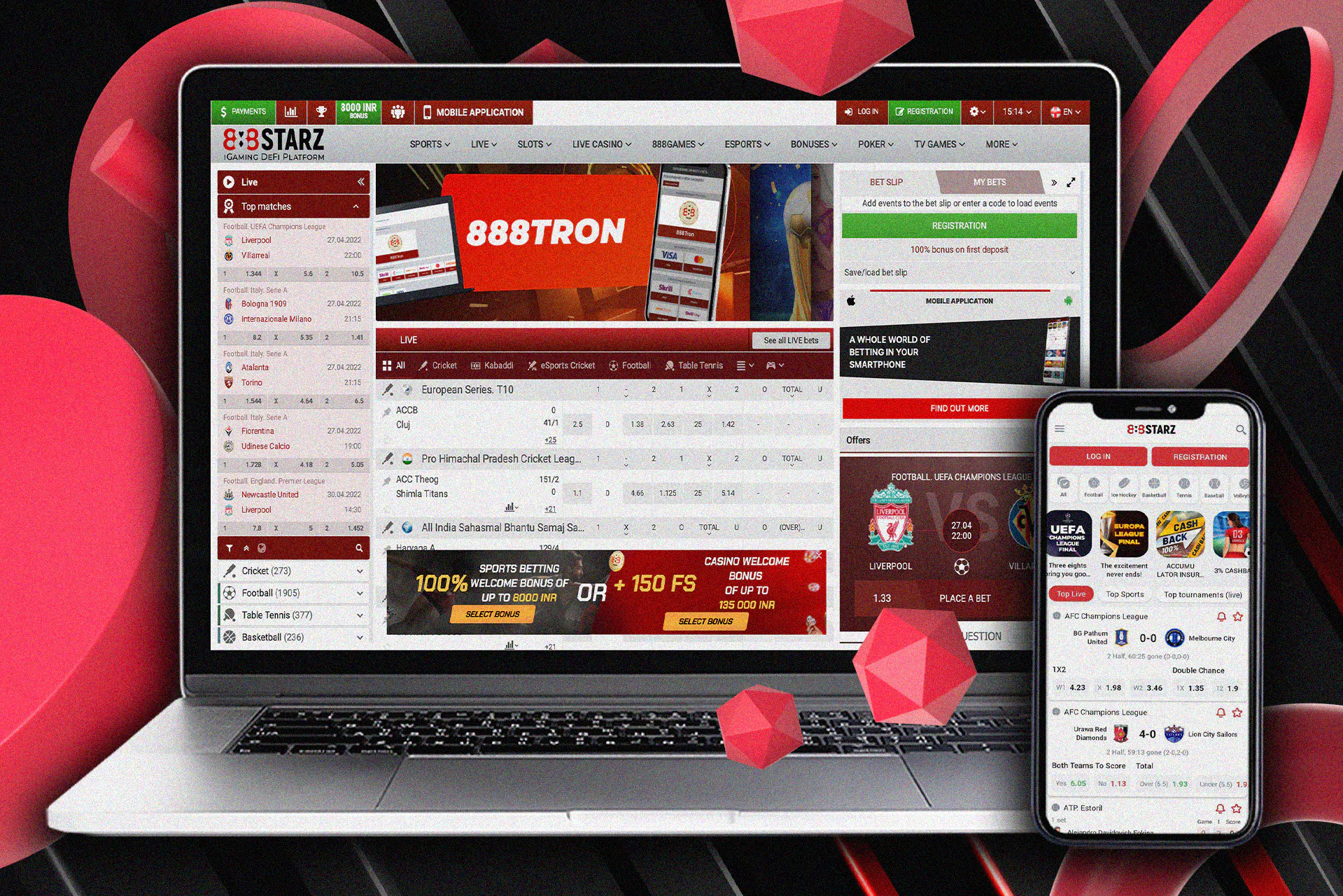 Customers of 888STARZ are comfortable placing bets from mobile applications, and many matches are available via live broadcasts. In addition to the usual regular bets, express bets, and systems, players have access to other types of bets. Such a choice significantly increases the opportunities for bettors — they have way more opportunities for productive and profitable play.