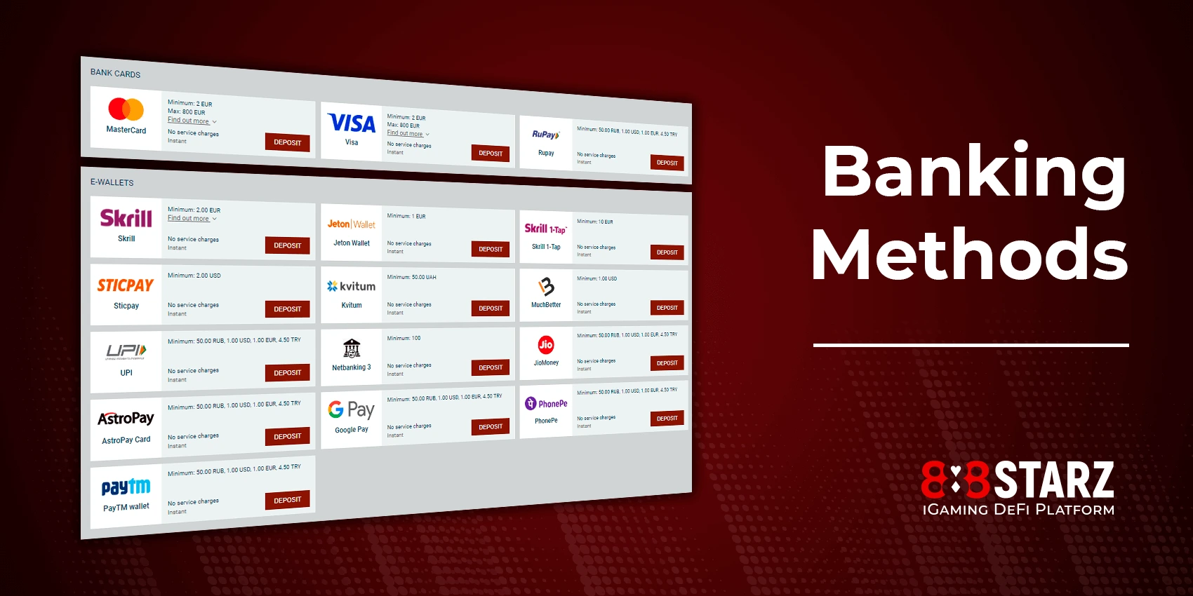 For those who prefer using cards and vouchers, 888STARZ accepts PaySafeCard, Neosurf, and Jeton Cash. These options provide a secure and straightforward way to make deposits, especially for those who may not be comfortable with other digital platforms.
